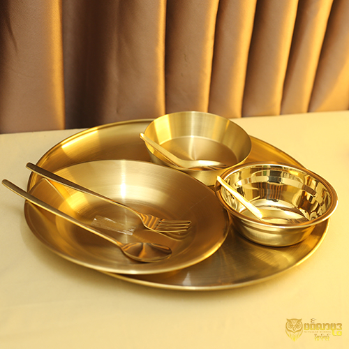 ၁၄လက်မစတီး ဆွမ်းပွဲစုံ(၁၄လက်မဗန်း၁ချပ်+ဆွမ်းပန်းကန်တစ်ချပ်+ပူတင်းဟင်းရည်ခွက်သေး၁လုံး+ဟင်းရည်ခွက် ၁ လုံး+ဇွန်းခရင်း၁စုံ+စတီးဇွန်းသေး(၁)ချောင်း)