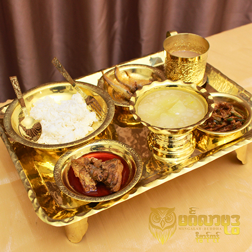 ၁၆လက်မ ကြေးဒေါက်ဗန်းဆွမ်းပွဲစုံ, (၁၆လက်မဒေါက်ဗန်း၁ချပ်+၇လက်မ ပန်ကန်ပြား ၁ချပ်+၅လက်မ ပန်ကန်ပြား၂ချပ်+၄လက်မပန်ကန်ပြား၁ချပ်+သစ်သီးခွက်ဗြောင် ၁လုံး+ပန်းကနုတ်သောက်တော်ရေခွက် ၁ခွက်+ဇွန်းခရင်း၁စုံ)