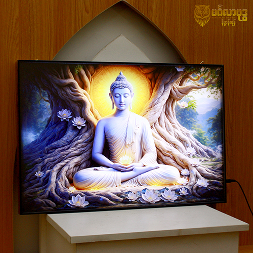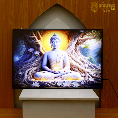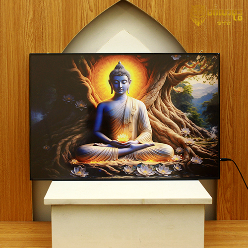 ဘုရားပုံတော် မီးပါ(ကြာပွင့်များပါ အဖြူရောင်စျာနလက်ဟန်ဘုရားပုံတော်)