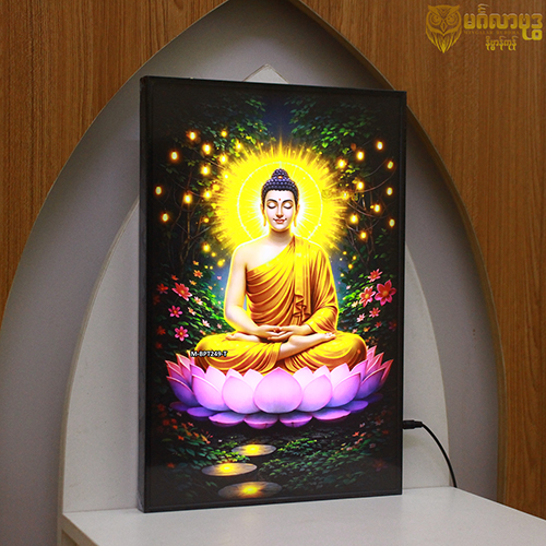 ဘုရားပုံတော် မီးပါ(နောက်ခံမီးလုံးများပါ စျာနလက်ဟန်ဘုရားပုံတော်)