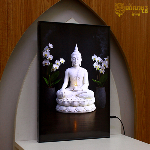 ဘုရားပုံတော် မီးပါ(သစ်ခွပန်းနှင့် အဖြူရောင်ဗောဒိလက်ဟန်ဘုရားပုံတော်)