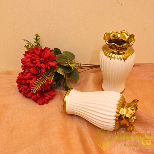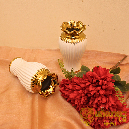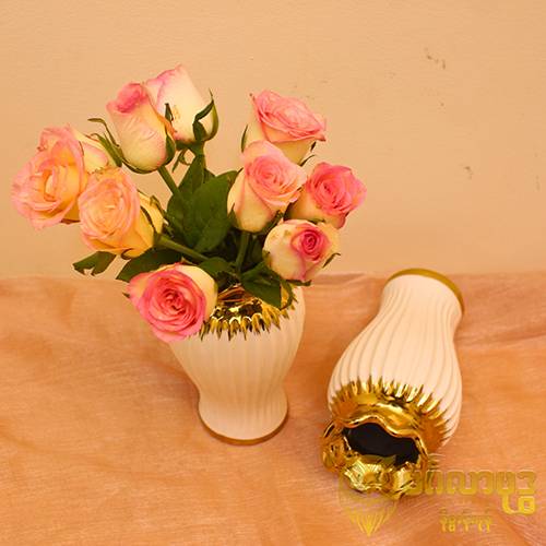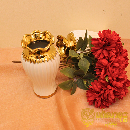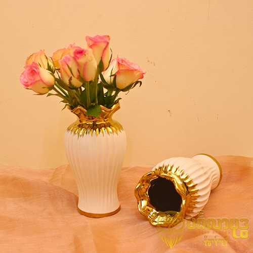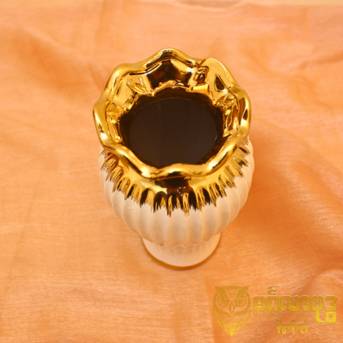 ကြွေဖြူရွှေအနားပါ အဝကျယ်ပန်းအိုး