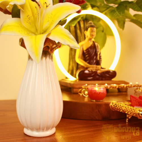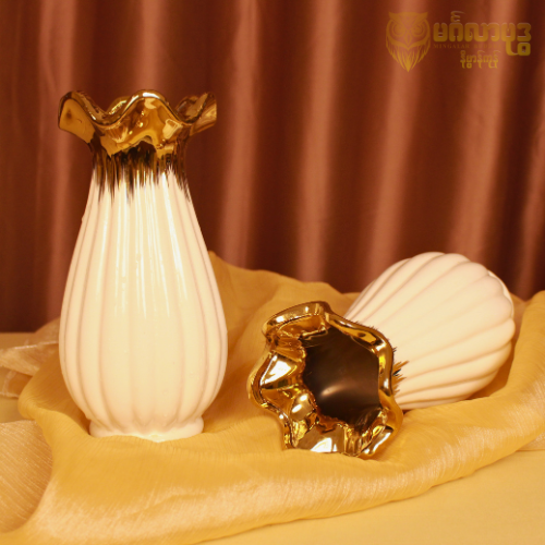 ကြွေဖြူရွှေအနားပါ အဝကျဉ်း ပန်းအိုး ၁၀ လက်မ