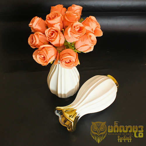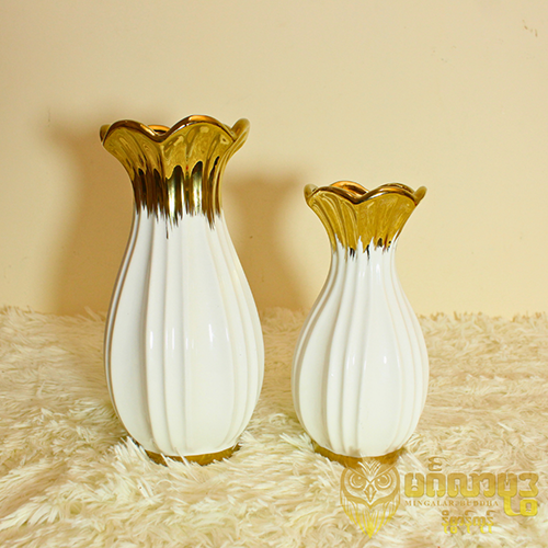 ကြွေဖြူရွှေအနားပါ အဝကျဉ်းပန်းအိုး ၈လက်မ