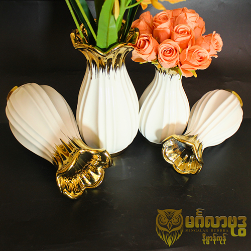 ကြွေဖြူရွှေအနားပါ အဝကျယ်ပန်းအိုး