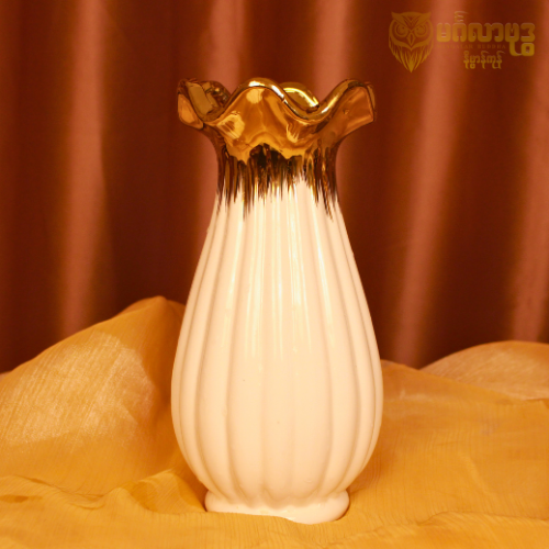 ကြွေဖြူ ရွှေလိုင်းပါ ပန်းအိုး