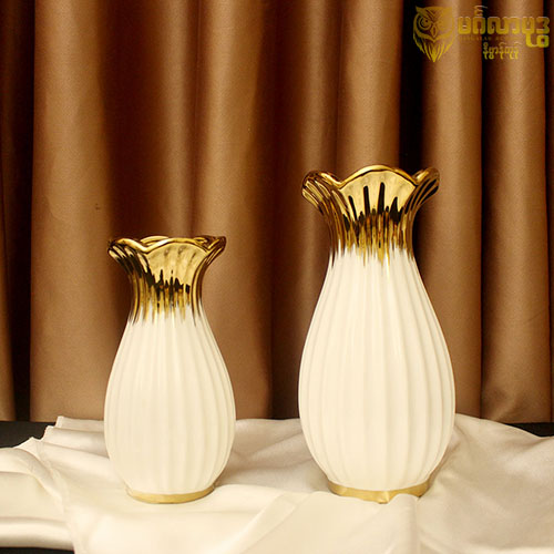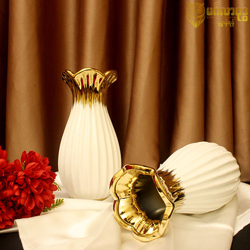 ကြွေဖြူပန်းအိုး အောက်ခြေရွှေနားပါ