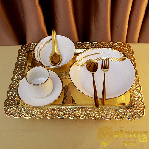 ကြေးဒေါက်ဗန်းပါ ဖန်ဆွမ်းပွဲ set