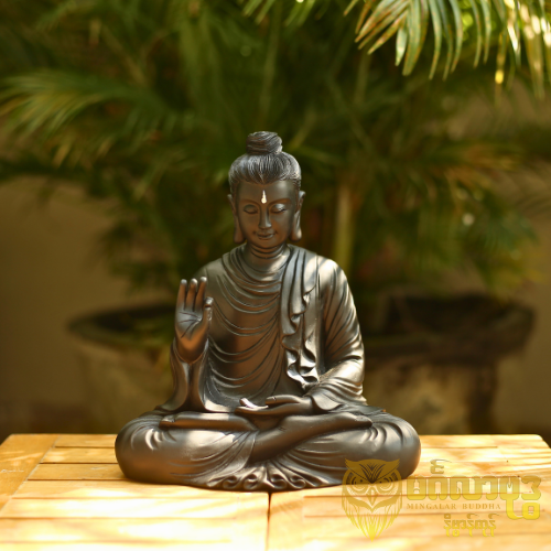 အဘယမုဒြာ ကျွန်းနက်သား ပန်းပုဘုရား ၁၀ လက်မ ပုလ္လင်မပါ