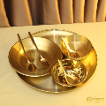 ၁၄လက်မစတီး ဆွမ်းပွဲစုံ(၁၄လက်မဗန်း၁ချပ်+ဆွမ်းပန်းကန်တစ်ချပ်+ပူတင်းဟင်းရည်ခွက်သေး၁လုံး+ဟင်းရည်ခွက် ၁ လုံး+ဇွန်းခရင်း၁စုံ+စတီးဇွန်းသေး(၁)ချောင်း)