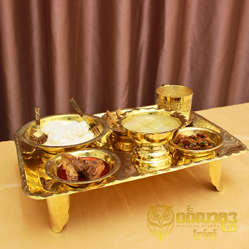 ၁၆လက်မ ကြေးဒေါက်ဗန်းဆွမ်းပွဲစုံ, (၁၆လက်မဒေါက်ဗန်း၁ချပ်+၇လက်မ ပန်ကန်ပြား ၁ချပ်+၅လက်မ ပန်ကန်ပြား၂ချပ်+၄လက်မပန်ကန်ပြား၁ချပ်+သစ်သီးခွက်ဗြောင် ၁လုံး+ပန်းကနုတ်သောက်တော်ရေခွက် ၁ခွက်+ဇွန်းခရင်း၁စုံ)