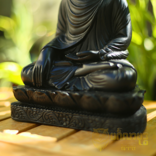 ဘူမိဖဿမုဒြာ/အောင်တော်မူ ကျွန်းနက်သား ပန်းပုဘုရား ၉ လက်မ ပုလ္လင်ပါ