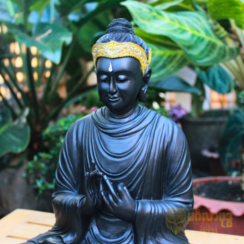ဓမ္မစင်္ကြာမုဒြာ ကျွန်းနက်သား ပန်းပုဘုရား ၁၂လက်မ ပုလ္လင်မပါ