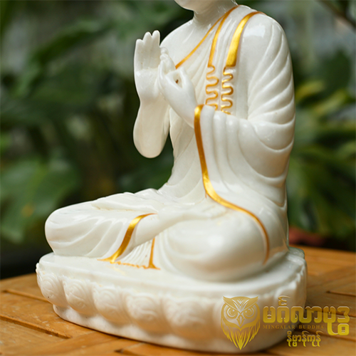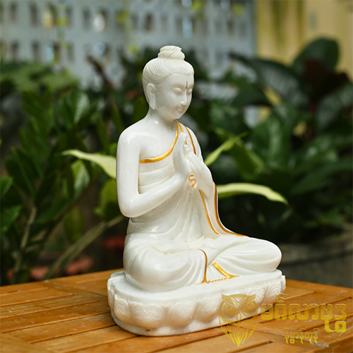 ဓမ္မစကြာ်မုဒြာ စကျင်ကျောက်ဘုရား ၁၁လက်မ ပုလ္လင်ပါ (CNC စက်ထု)